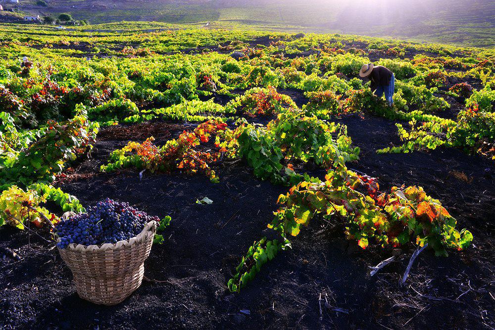 Nuestro sistema de cultivo, no nos permite mecanizar de ninguna manera, por lo tanto todos los trabajos son realizados a mano, donde el sacrificio anual de hombres y mujeres cargando con cestos, una labor dedicada al esfuerzo y a la fe que tienen, en que el resultado de su coraje ha merecido la pena. El trabajo de la tierra, es mínimo, ya que al estar cubierta por ceniza volcánica, el crecimiento de malas hierbas es nulo y no se necesita ninguna manipulación del suelo. Nuestro compromiso con el terroir de los Llanos Negros es buscar la mayor integración con el ecosistema.